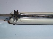 Der Griff ist aus Knochen. Die Klinge ist aus T12 Stahl geschmiedet wurde die Klinge in der Forge de Laguiole. Anstelle der Biene wurde vom Künstler Munoz eine Libelle handzisliert. Am Resort finden Sie handziselierte Blumen.Ein weiteres exclusives Modell für messer-exclusive.
